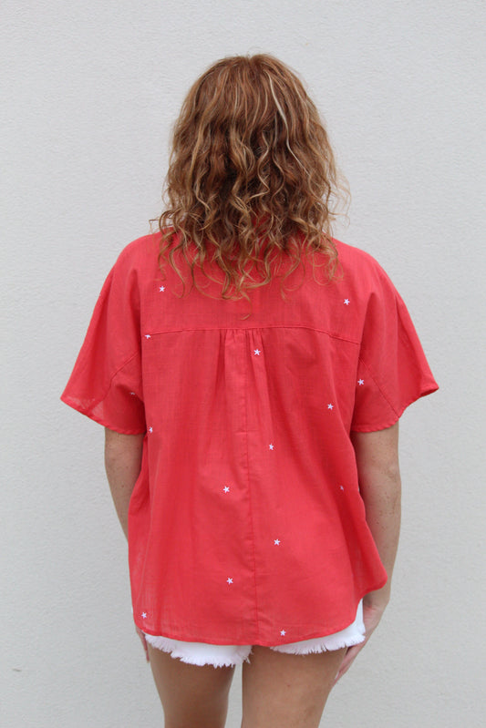 Star Embroidered Top - Red