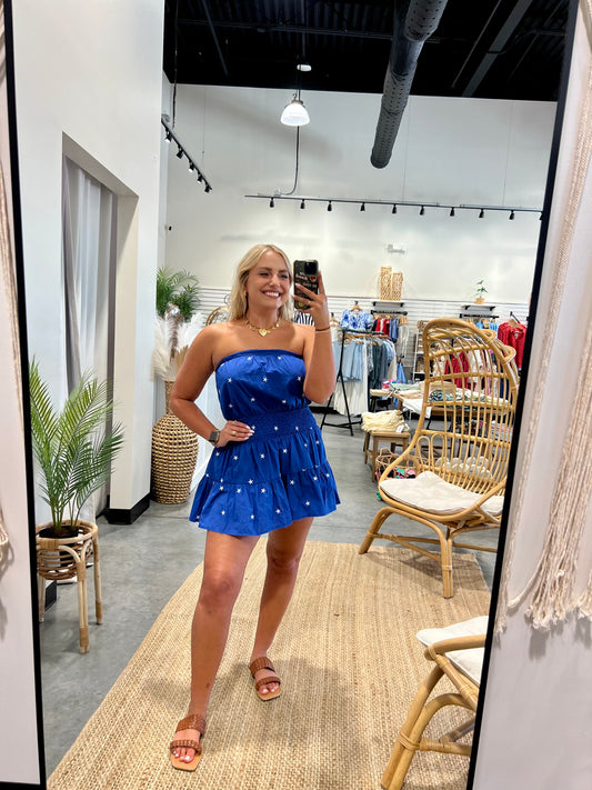 Star Embroidered Romper Dress