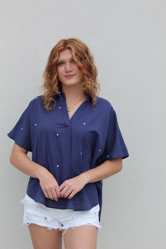 Star Embroidered Top - Navy