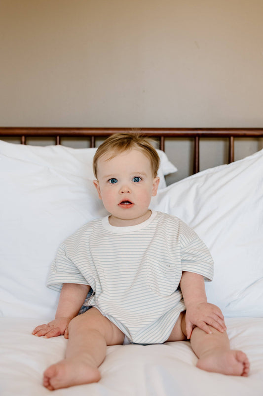 Cory Pocket Romper - Blue Stripes
